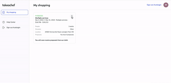 If chefs have already submitted proposals, they’ll be notified about the cancellation, and their availability will automatically be updated for other clients.