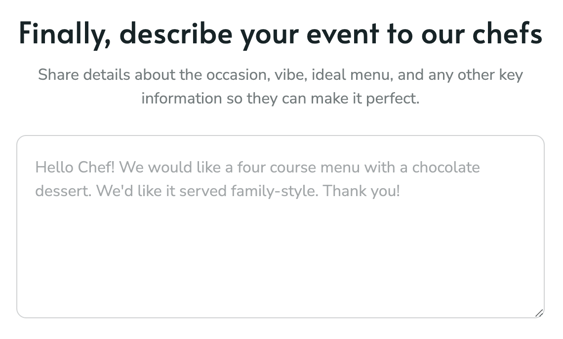 This helps the chef craft the ideal setting and tone for your special event.