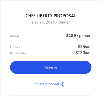 2. Confirmation: Wait for the chef to confirm whether they can provide the extra service or item. Once confirmed, the chef will update the proposal to include the extra, clearly listing it with its separate price.