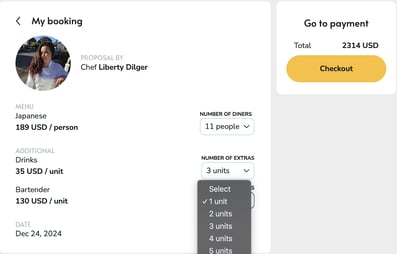 If you already have proposals, you can discuss extras directly with the chef via the platform chat. If the chef can provide the services, they’ll include them as extras, which can be added to your final price at checkout.