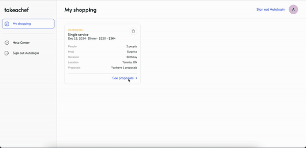 Within each proposal received, you will find a direct chat feature that allows you to communicate with the chefs. This chat enables secure messaging without needing to leave the platform. To access the chat, simply follow these steps:
