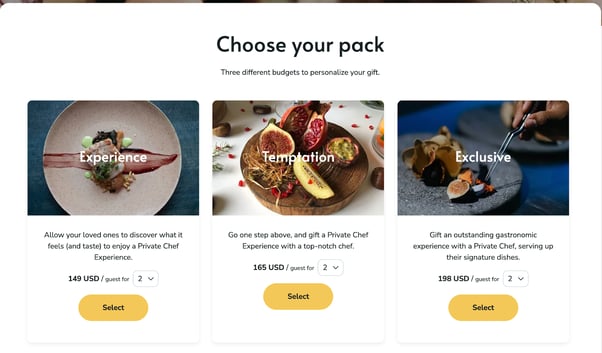 We offer three unique gift packages – Experience, Temptation, and Exclusive – each tailored to create an unforgettable dining experience.