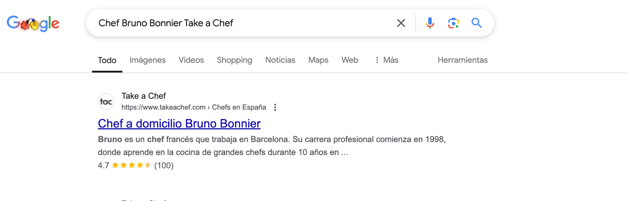 First, we will need to locate your desired chef’s profile. Simply search for your chef's name along with "Take a Chef" on Google.